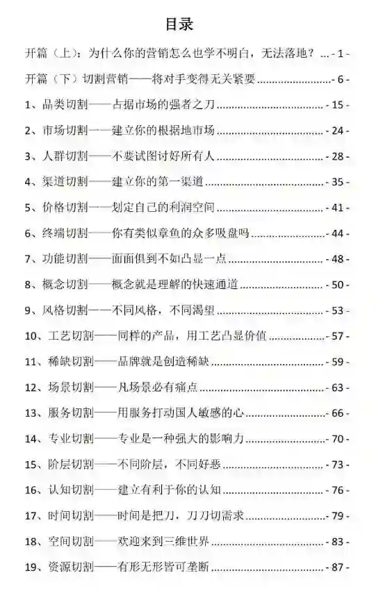 一本为企业量身打造的实战手册,以“切割营销”为核心,提出了30种创新策略,涵盖品类、市场、人群、渠道、价格等关键环节,全方位解决营销难题。