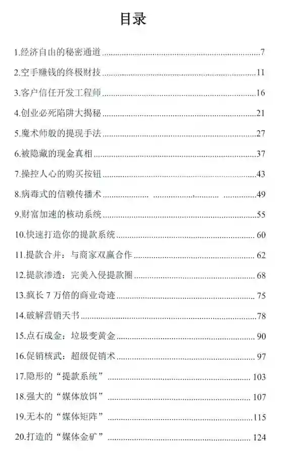 空手挣钱财技、创业提款魔术、操控人心购买、信赖传播技术;