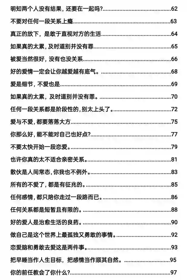《情场清醒指南》我们喜欢一个人,往往是因为对方对我们有某种价值。这个价值可以是外在的,比如外貌,学历等:也可以是内在的,比如他懂得满足你的情绪,能够给到你安全感。