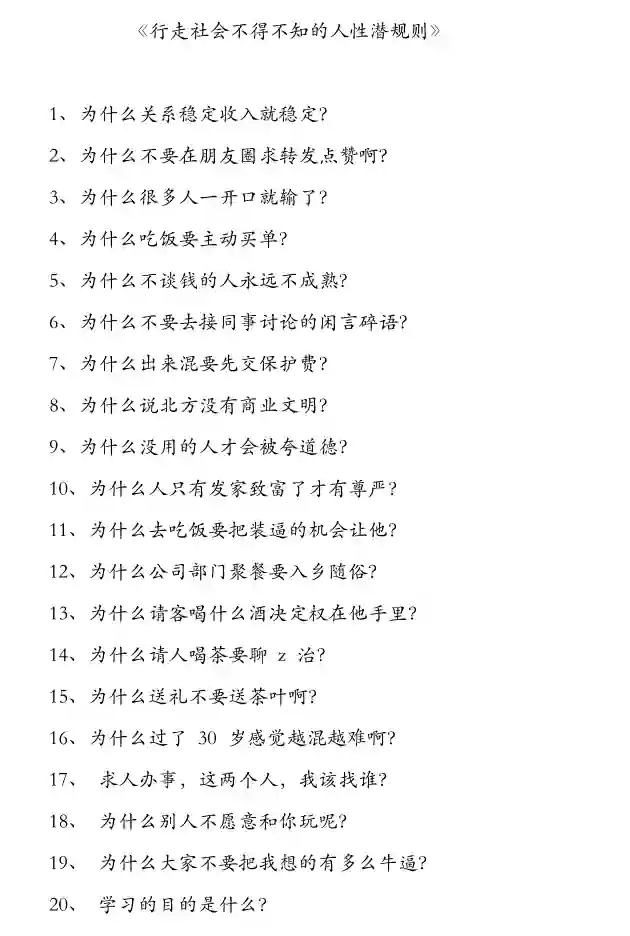 这些潜规则,平时无法公开说,大家只做不说。但是,你得知道。