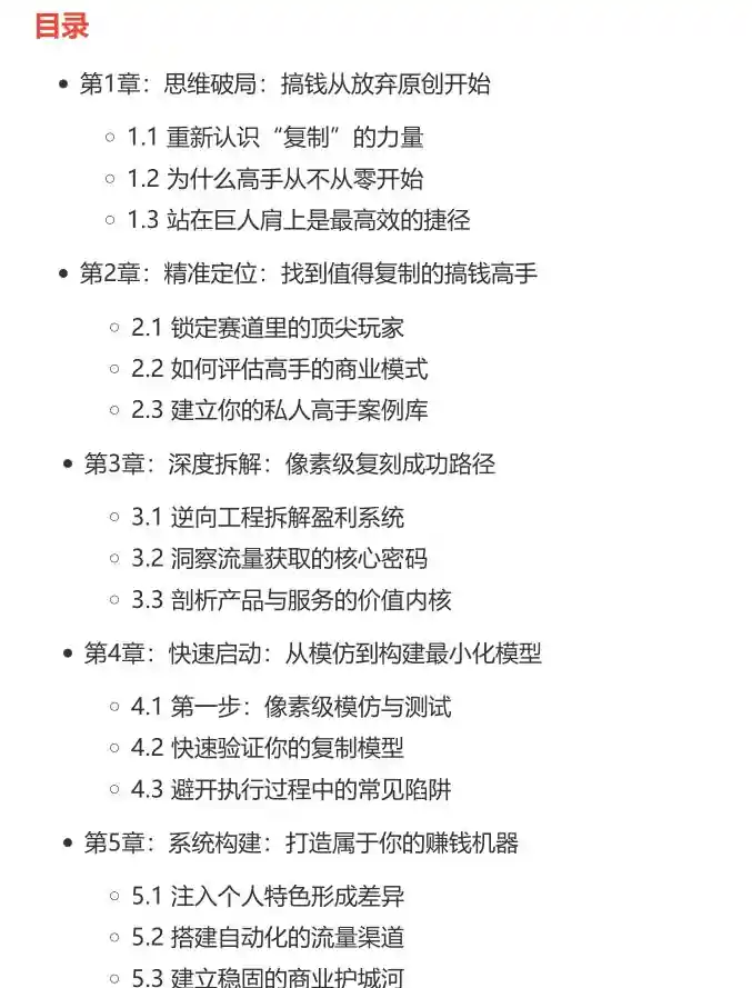 本书彻底颠覆了从零到一的创业迷思,揭示了一条高效的搞钱捷径:找到你所在领域的顶尖高手,系统地拆解并复制他们的成功模式。