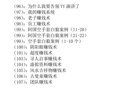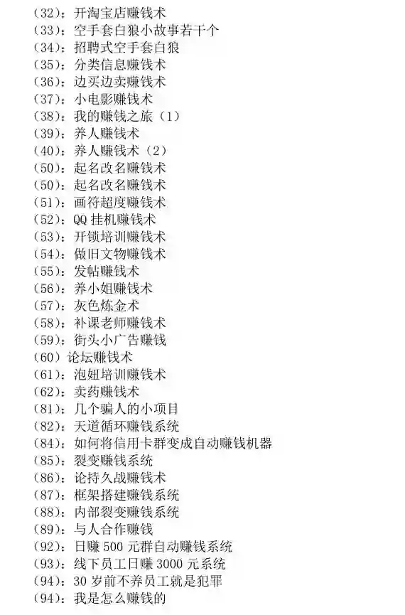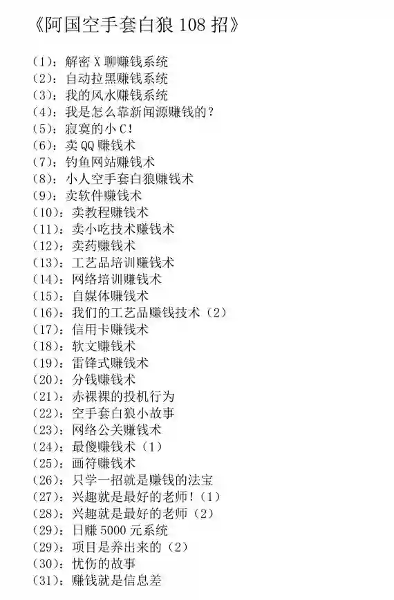 这108招,就是108个灰色项目。所有的项目都是暴利的,所有的项目也都是介于法律与道德之间。做或不做,就看大家的人格操守与道德底线。