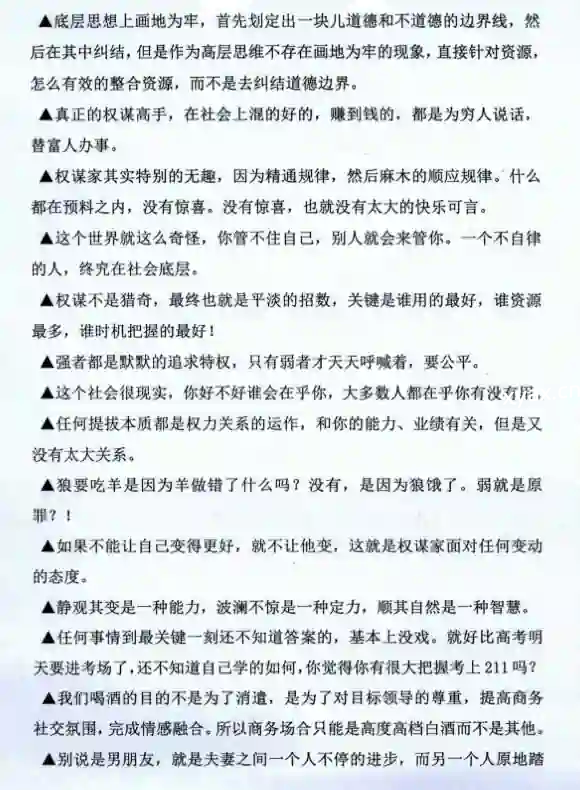 ▲我们从底层往上突破有个非常大的坎,就是当你在底层做点生意,做点小买卖,开始积累第一桶金的时候,你会发现这层次的很多人是不讲信用的,这一层人大部分人是不可靠的,所以你的小买卖会做的非常困难,你在这一层你每天大部分的概率就只能遇到一些不靠谱的人和事,只有当你的层次稍微高一点的时候,那个阶层的人才是可靠的,其实越往上,这个阶层就越可靠,所以从底层爬起来的这帮人非常难,大多数扛不过这个坎。必须先经历着世间的恶,然后才能慢慢体会到世界的善。