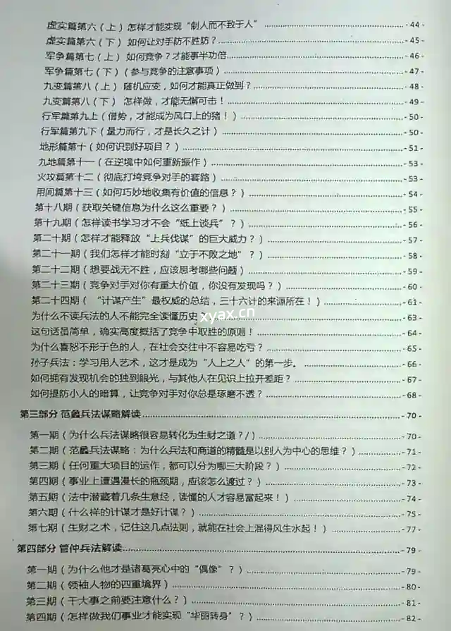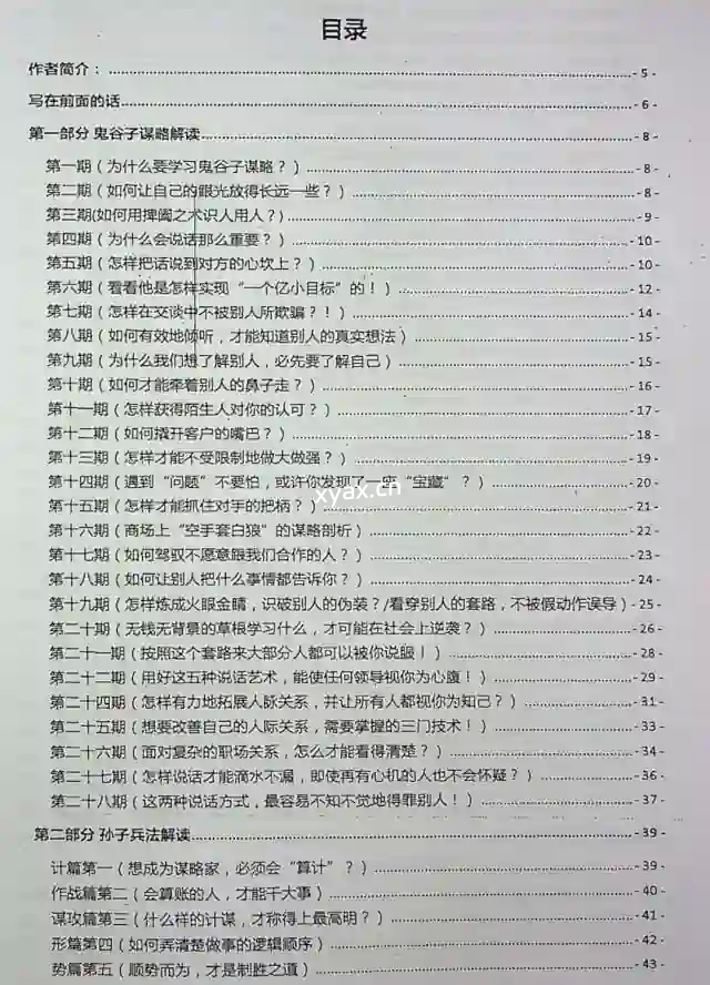 系统地解读姜子牙,鬼谷子,孙子兵法,诸葛亮等谋略经典。助你在短时间内领悟到历代谋略大家的智慧精髓,继承到中华几千年以来积累的精神财富。
