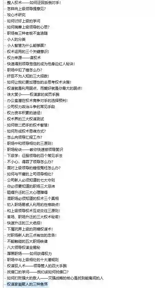 搜集了市面上能够见到的近2000多本几乎所有权谋的书,将其打碎,综合。又结合线下众多权谋培训,梳理,整理!总耗资十几万!