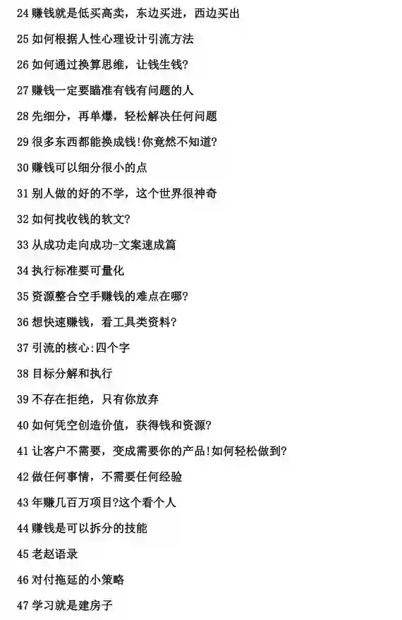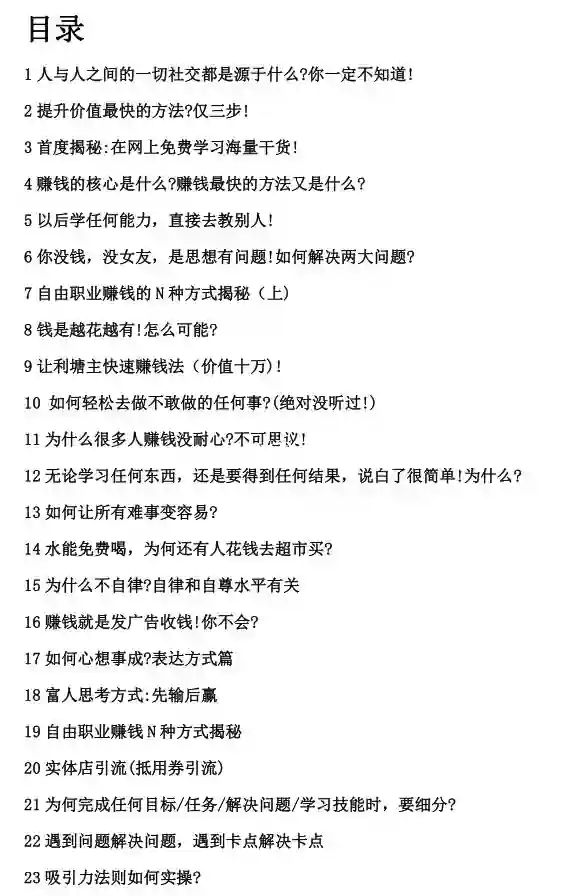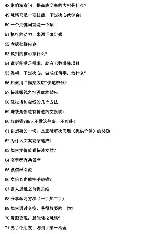 内容涵盖:赚钱项目,引流方法,成交策略等