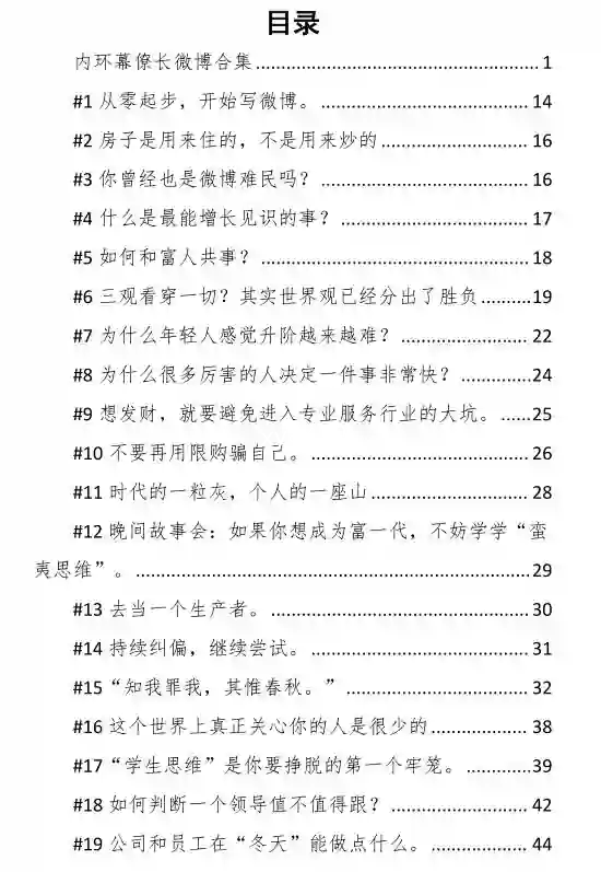 《内幕环僚长微博合集》汇聚了内环幕僚长深邃而豪迈的文字,为你揭示成功路上的心历路程。
