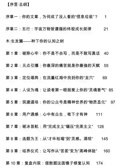 总共包含5大模块50个章节,包括木火土金水五大篇章。