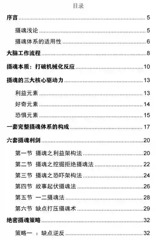 那么摄魂,最直白的目的就是抓取客户的注意力,很多人说现在的社会是乱世,钱难赚,事难干,其实都是屁话,所谓乱世出英雄,乱世里如果能够有效的勾到客户的魂,抓取客户的注意力,那就相当于有了一部印钞机,随时随刻都能轻松赚钱。想象一下,你谈客户的时候,你卖东西的时候,谈判的时候……等等,如果能随随便便一句话,一个动作就马上能勾起客户的注意力,让他的脑子一片空白,受你操控,那滋味爽不爽?想不想要?