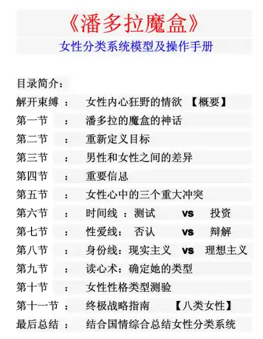迪卡洛的潘多拉魔盒,只需要问女人3个问题,把女人分成8种类型,不同女人不同策略。