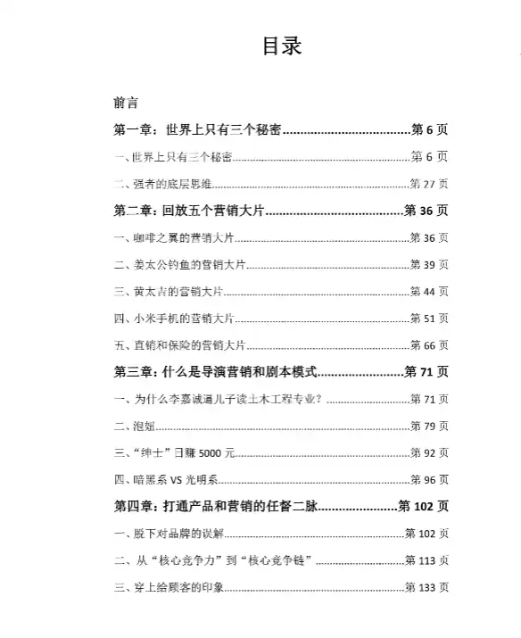 前言的作用就是让读者在30秒内决定要不要看下去,所以我抱着对时间的敬畏之心,对本书做一个简单客观的介绍:本书讲的全是“营销策划”方面的东西,如果你对商业赚钱不感兴趣,那么可以立刻放下本书。