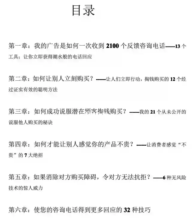 事实上,我的所有广告策划活动之所以极少失手,秘密之一就是一—提供“行动机制”!你希望别人读完你的广告后,立即给你打电话或者做出其他的某种回应行动,那么你必须清楚无误地告诉读者—一他们做一个什么样的行动,然后你就会给他们一种什么样的利益或报酬。