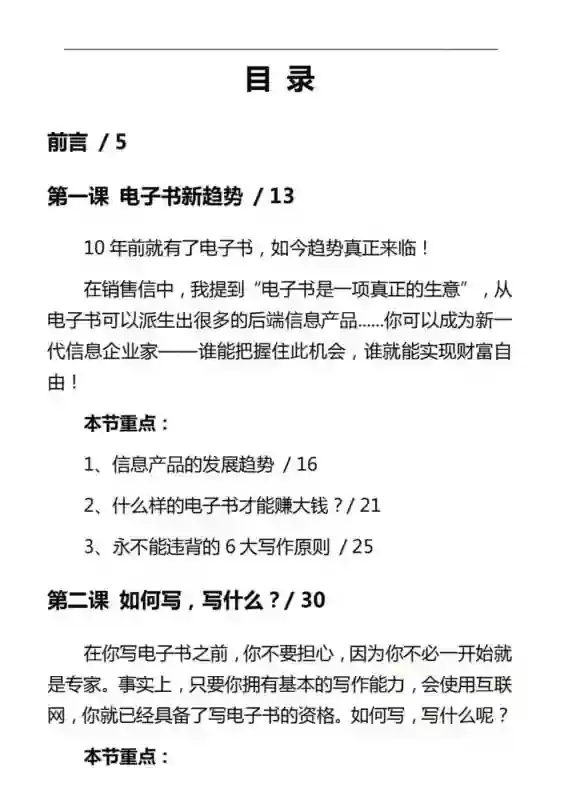 我说的电子书,不是你看到的大块头几百页的电子书,而是数十页,十几页,甚至几页的“指导类”电子书。比起数百页的书,电子书非常容易制作。