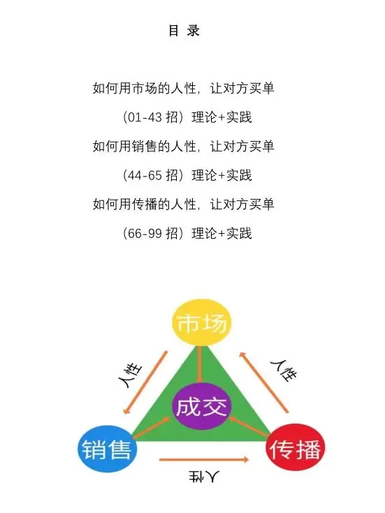 《人性买单99招》——原理,营销、职场、交际三种案例,够你搞定各种顾客、各种上级、各种熟人,其实和挖坑一样的,挖好了坑再往坑里引人……市场人性是挖坑,销售、传播人性是引人。