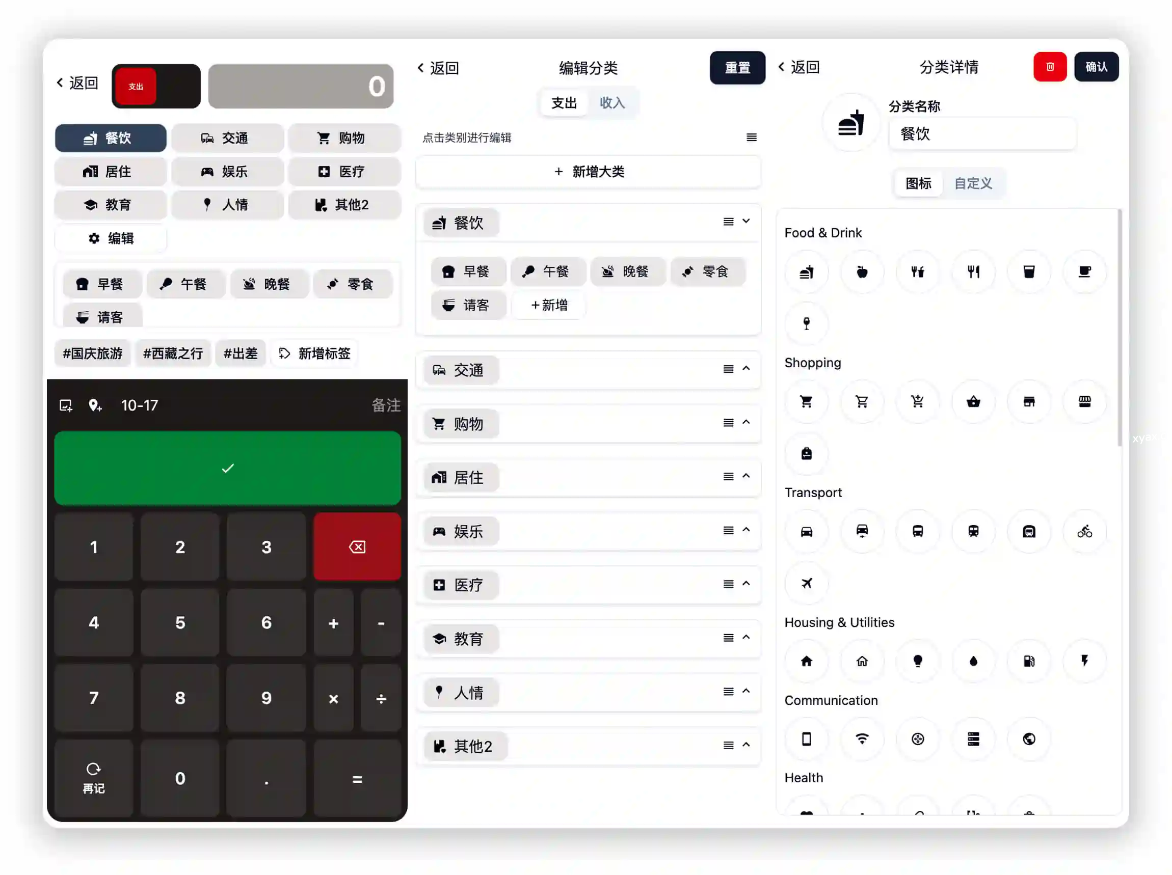 💰 预算管理:按分类或标签设置预算并实时监控进度。