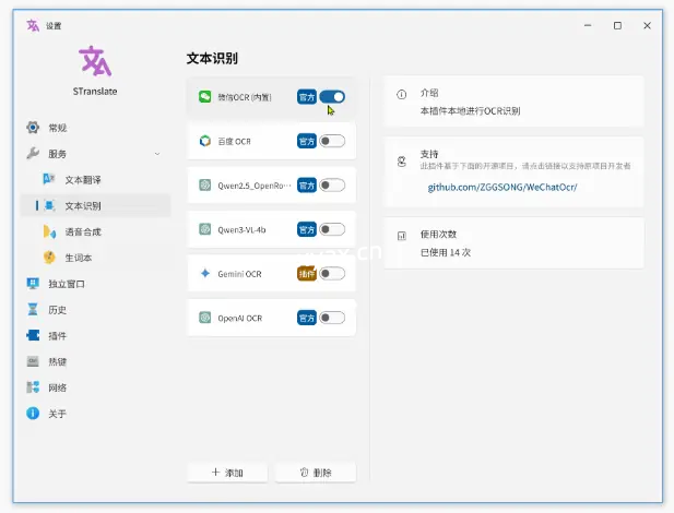 基于 .NET 的强大插件架构,官方与社区提供丰富插件,不仅限于翻译,更能拓展 TTS、OCR 及各类自定义服务。