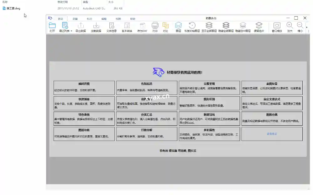 免费CAD快速看图,提供测量、统计、标注、CAD版本转换、图形识别、图纸对比等实用功能。无需安装CAD即可使用。