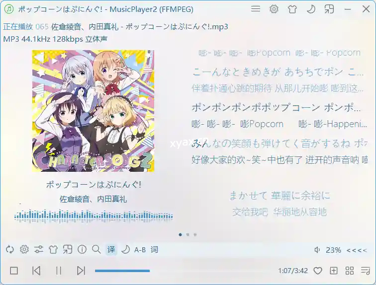 MusicPlayer2是一款功能强大的本地音乐播放软件,旨在为用户提供最佳的本地音乐播放体验。它支持歌词显示、歌词卡拉OK样式显示、歌词在线下载、歌词编辑、歌曲标签识别、专辑封面显示、专辑封面在线下载、频谱分析、音效设置、任务栏缩略图按钮、主题颜色、格式转换等功能,支持高度自定义的界面布局,支持多种播放内核(BASS和FFMpeg)。播放器支持大部分常见的音频格式。