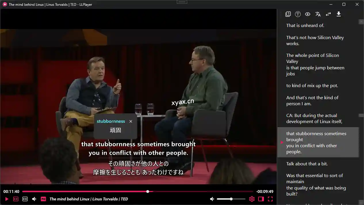 LLPlayer支持字幕侧边栏功能。