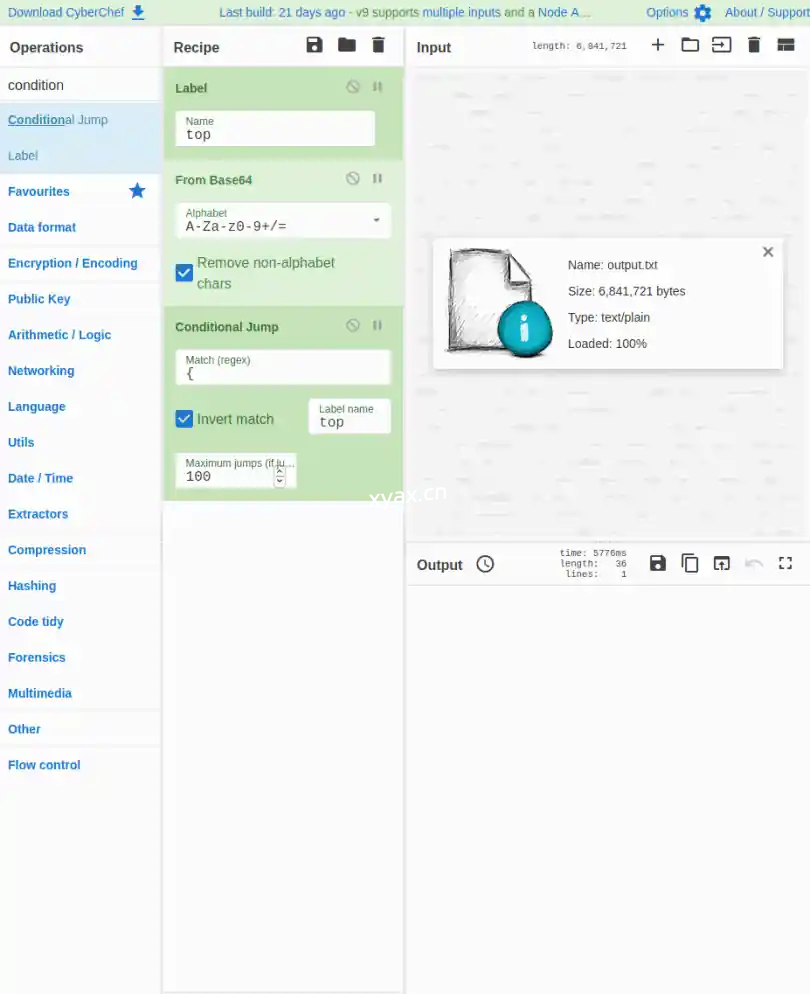 支持 30+的加密方法 例如编码(二进制,base64)和常规加密(例如 Caesar 密码,重复密钥 XOR 等)。