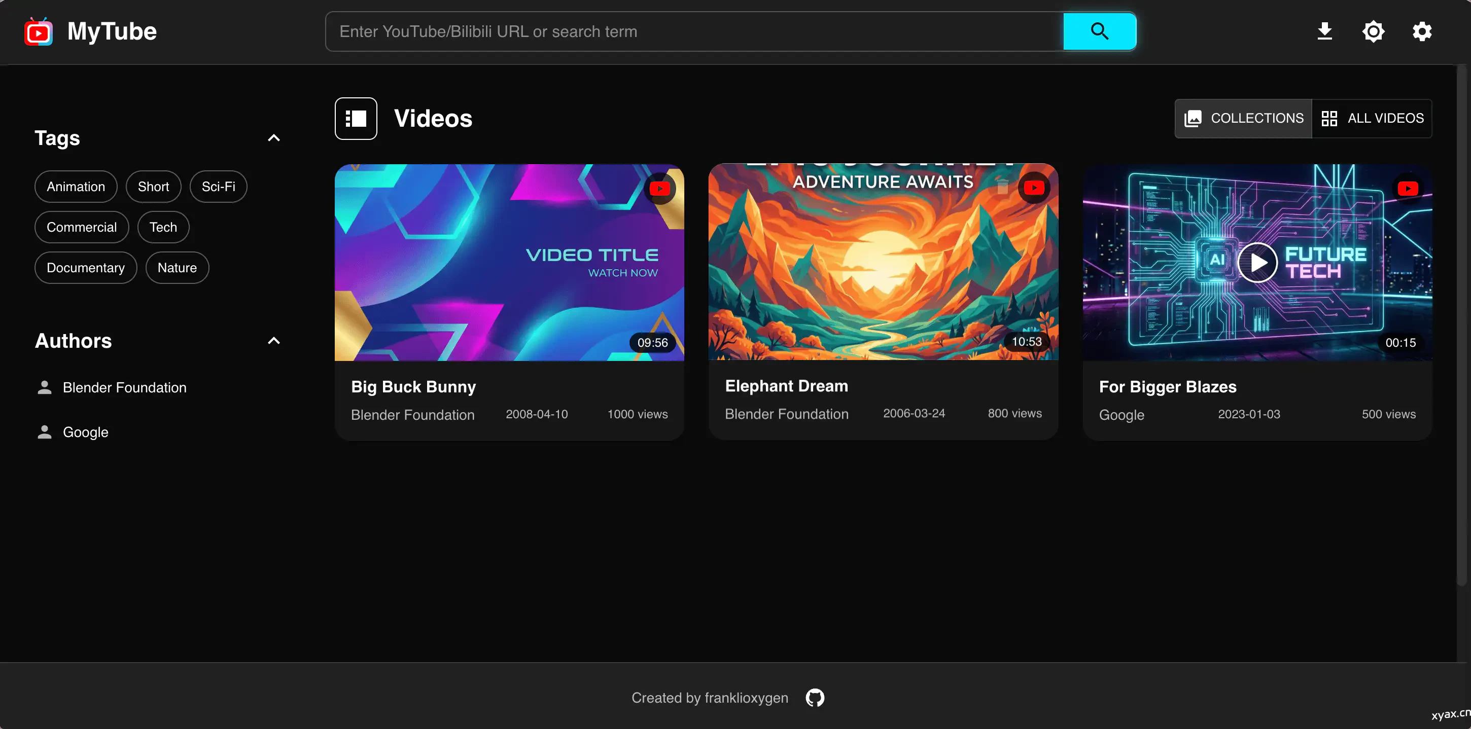 GitHub地址:https://github.com/franklioxygen/MyTube