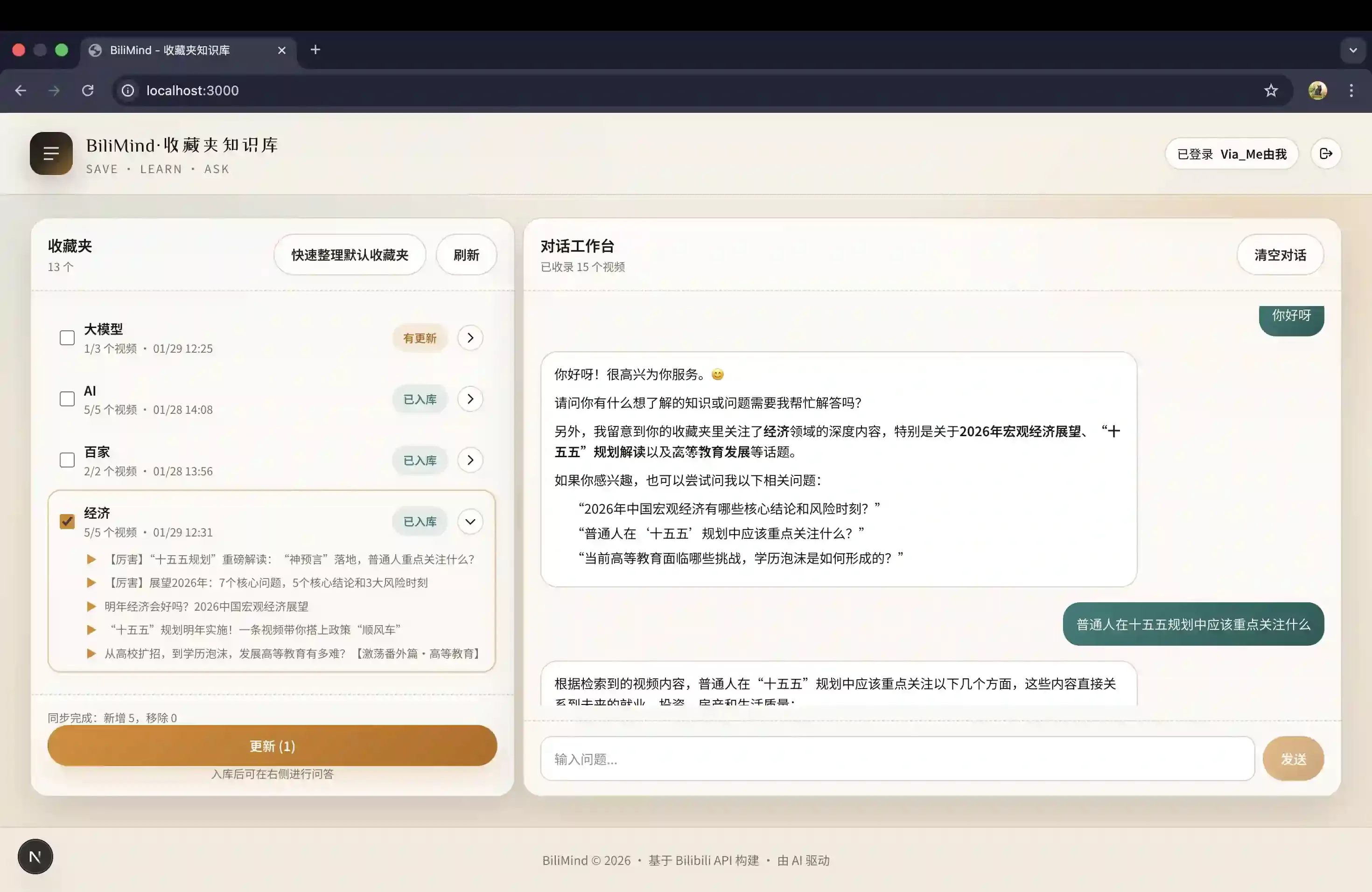 把你在B站收藏的访谈/演讲/课程,变成可检索、可追溯来源的个人知识库。适合:访谈/演讲/课程、技术视频与学习视频整理、公开课复盘、知识总结、会议/分享回顾、播客内容归档等。
