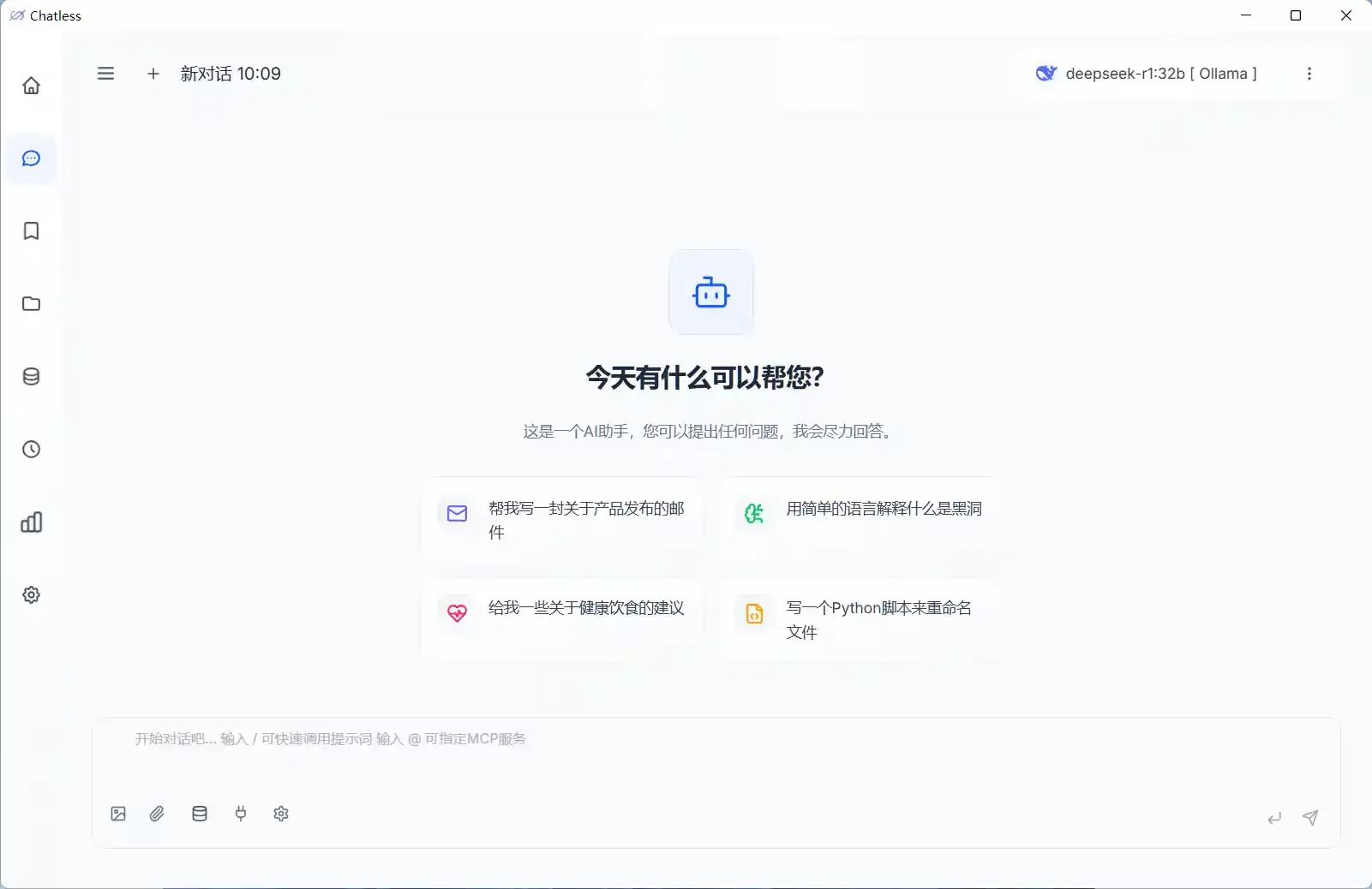 chatless 是一个桌面 AI 聊天客户端,支持接入多种云端 AI 服务(OpenAI、Anthropic、DeepSeek 等)或本地模型(Ollama、LM Studio)。数据完全存储在本地,支持文档解析与向量检索(RAG)。