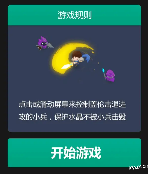 点击或滑动屏幕来控制盖伦击退进攻的小兵,保护水晶不被摧毁。 在线网址:http://game3.baifumeiba.com/dbj/ 声明:本站内容均收集于互联网,如不慎侵犯到您的版权利益,请附带相关证明文件来信本站将立即予以下架删除。