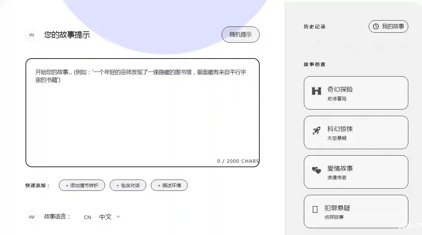 在线网址:https://storiesgenerator.org/zh
