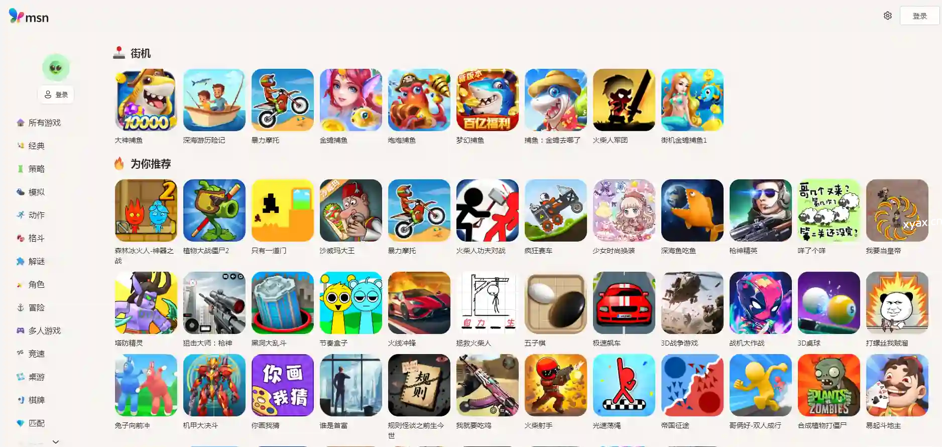 微软提供的在线小游戏合集,分类比较多。 在线网址:https://www.msn.cn/zh-cn/play/arcade 声明:本站内容均收集于互联网,如不慎侵犯到您的版权利益,请附带相关证明文件来信本站将立即予以下架删除。