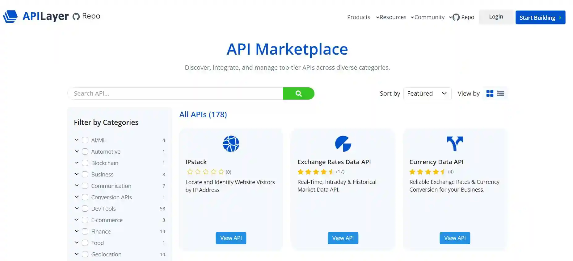 一个 API 市场,提供多种高性能的 API 供开发者使用。可以在此平台上发现、集成和管理各种 API,涵盖了从货币兑换、电子邮件验证到天气数据等多个领域。