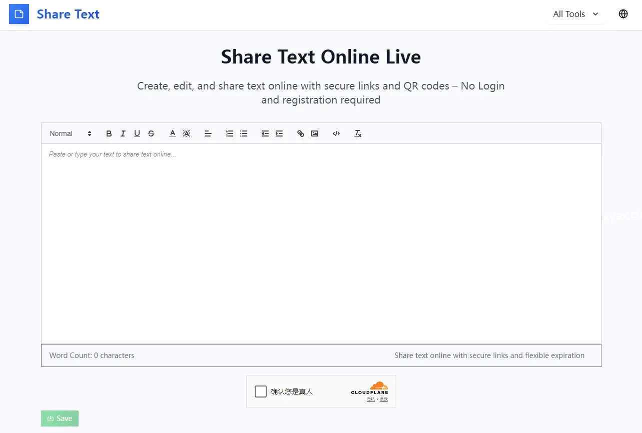 公共网络记事本,支持在线文本创建和通过链接或者二维码进行分享。