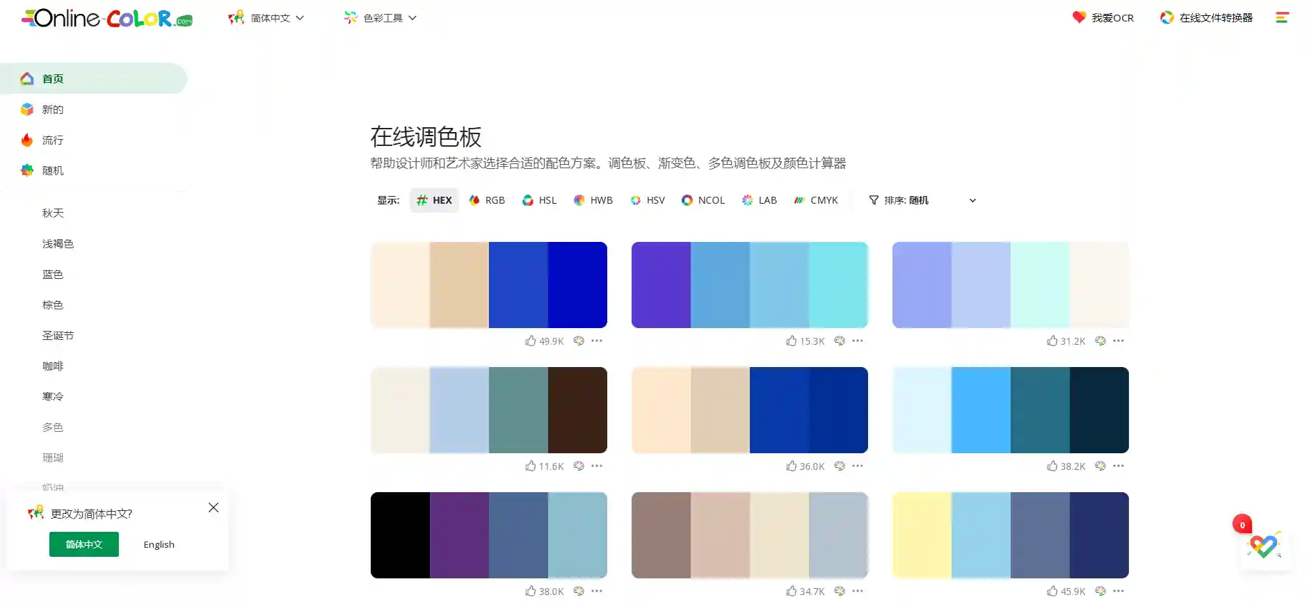 帮助设计师和艺术家选择合适的配色方案。调色板、渐变色、多色调色板及颜色计算器。 在线网址:https://cn.online-color.com/ 声明:本站内容均收集于互联网,如不慎侵犯到您的版权利益,请附带相关证明文件来信本站将立即予以下架删除。