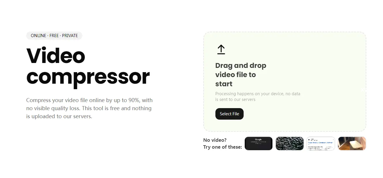 在线压缩视频文件高达90%,不会造成明显的质量损失。此工具是免费的,没有任何内容上传到我们的服务器。