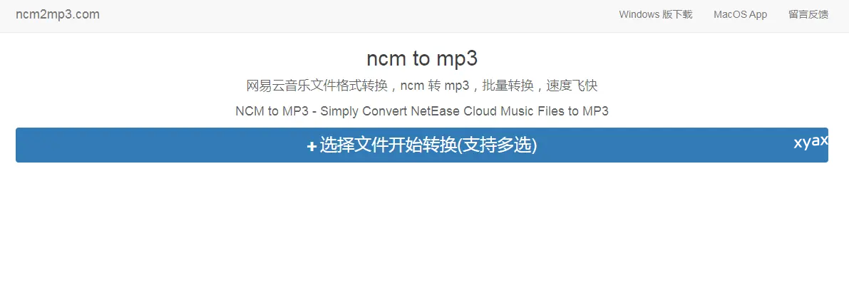 网易云NCM转MP3 - NCM to MP3 是一个在线工具,用于将网易云音乐的.ncm格式文件批量转换为.mp3格式文件。支持NCM转MP3、NCM转FLAC等多种格式转换。无需上传文件,即可快速转换。