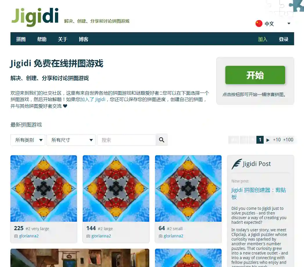 Jigidi-免费生成在线拼图的游戏网站,可以免费玩的在线拼图游戏,点击开始,就能进入一张随机拼图。最有意思的是,你可以上传任意一张图片或照片,生成属于你的拼图游戏。