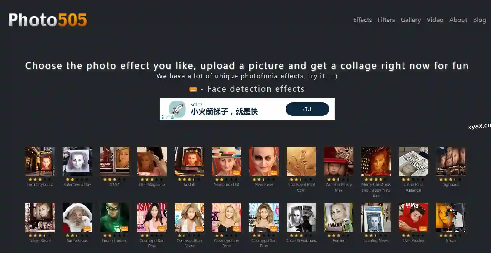 Photo505是一个在线照片编辑网站,为每个人提供大量的图片效果和照片滤镜。在线编辑图片非常快。 在线网址:https://photo505.com/ 声明:本站内容均收集于互联网,如不慎侵犯到您的版权利益,请附带相关证明文件来信本站将立即予以下架删除。