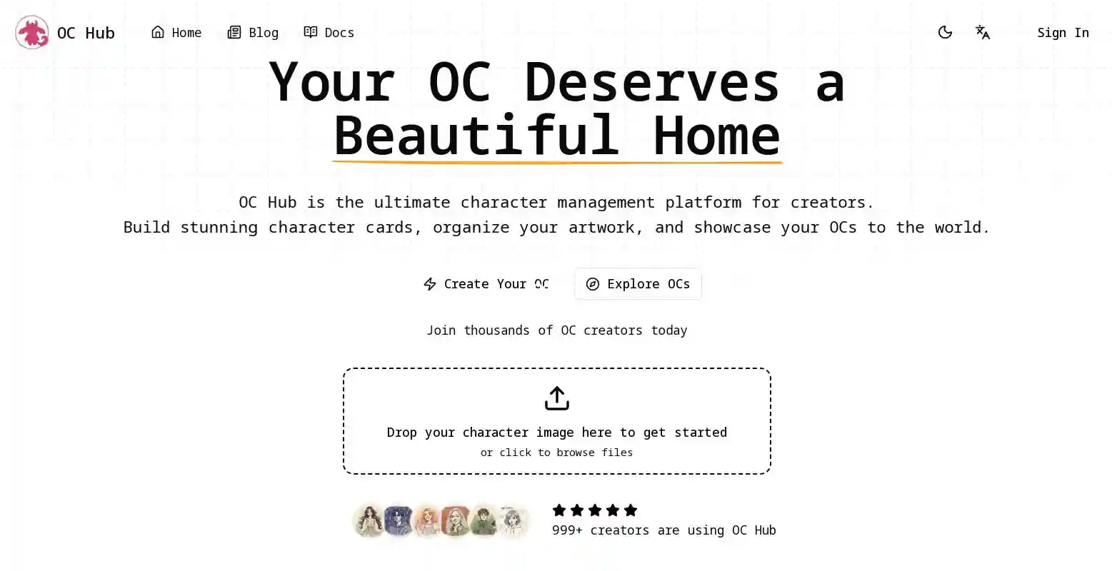 OC Hub 是专为原创角色创作者打造的一站式管理平台。告别散落在相册和网盘里的文件,给你的 OC 一个精美有序的家。