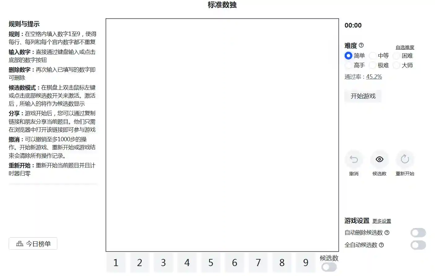 撤消:可以撤销至多1000步的操作。开始新游戏、重新开始或游戏结束会清除所有操作记录。