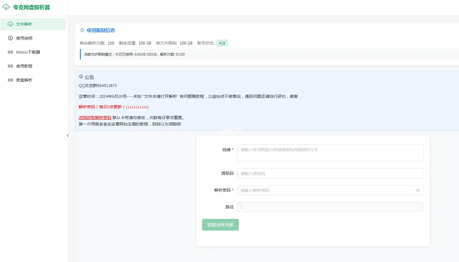 免费,白嫖 夸克网盘解析工具,提供高效便捷的网盘文件解析服务,支持批量解析,快速获取直链,提升下载体验。 在线网址:https://kk.os3.cn/user/parse 声明:本站内容均收集于互联网,如不慎侵犯到您的版权利益,请附带相关证明文件来信本站将立即予以下架删除。