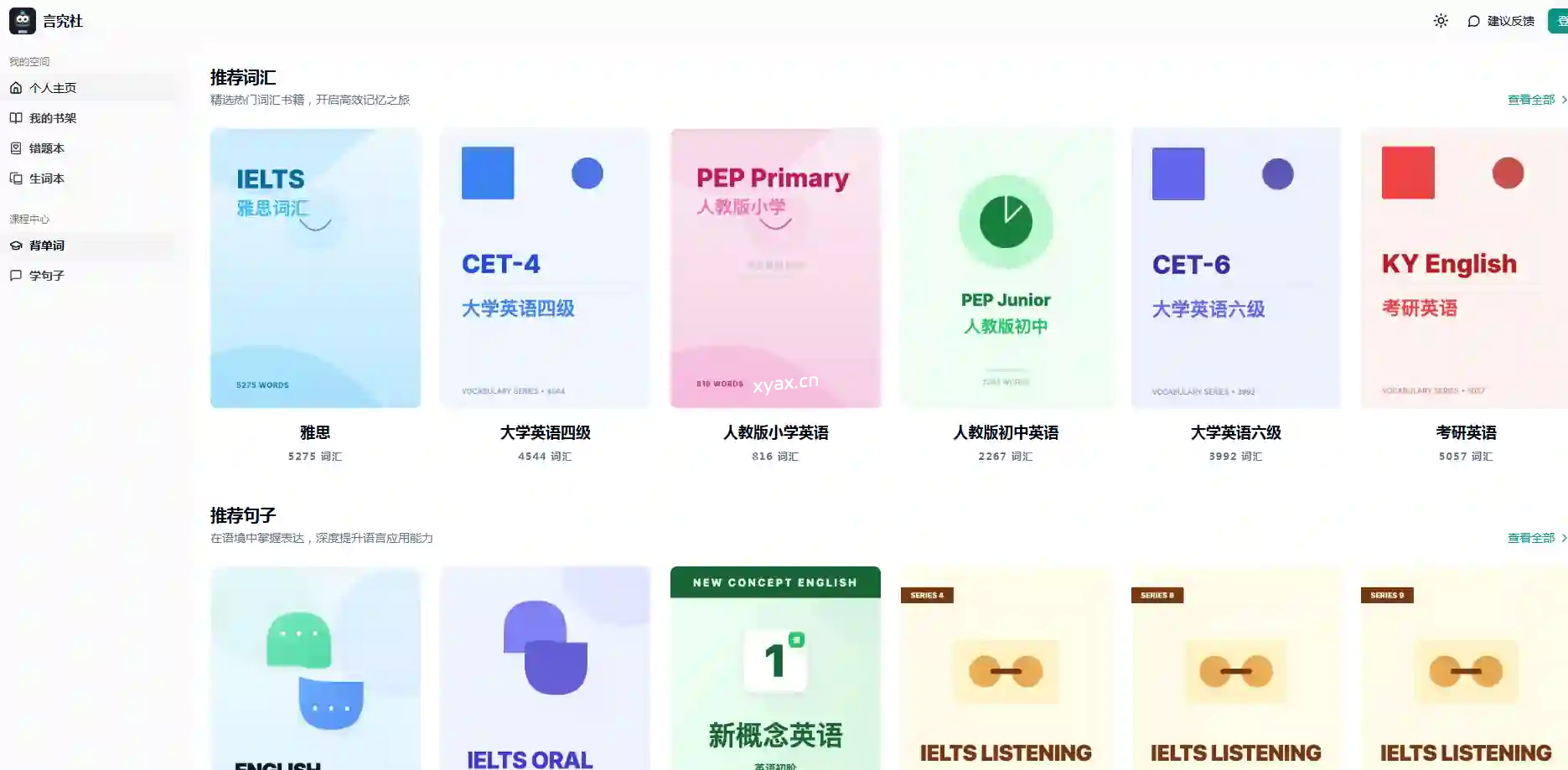 言究社是免费在线英语学习平台,支持在线背单词、句子学习通过键盘打字练习提升英语能力,覆盖四六级、考研、雅思托福等高频词汇与核心句型;让英语学习更有趣、更高效。