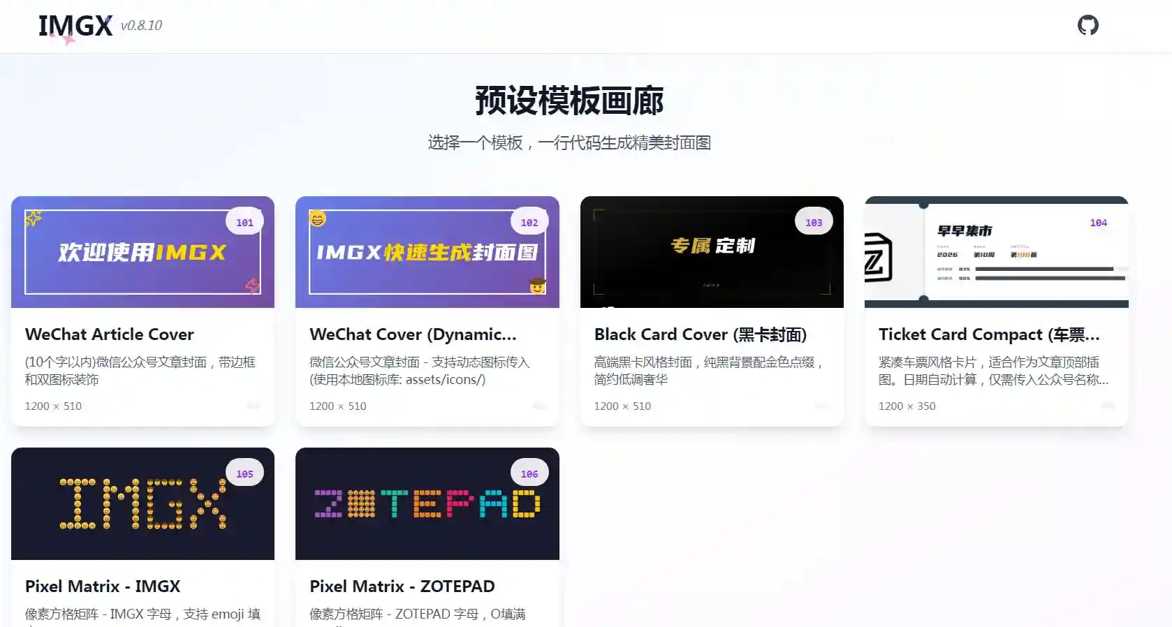 选择一个模板,一行代码生成精美封面图。