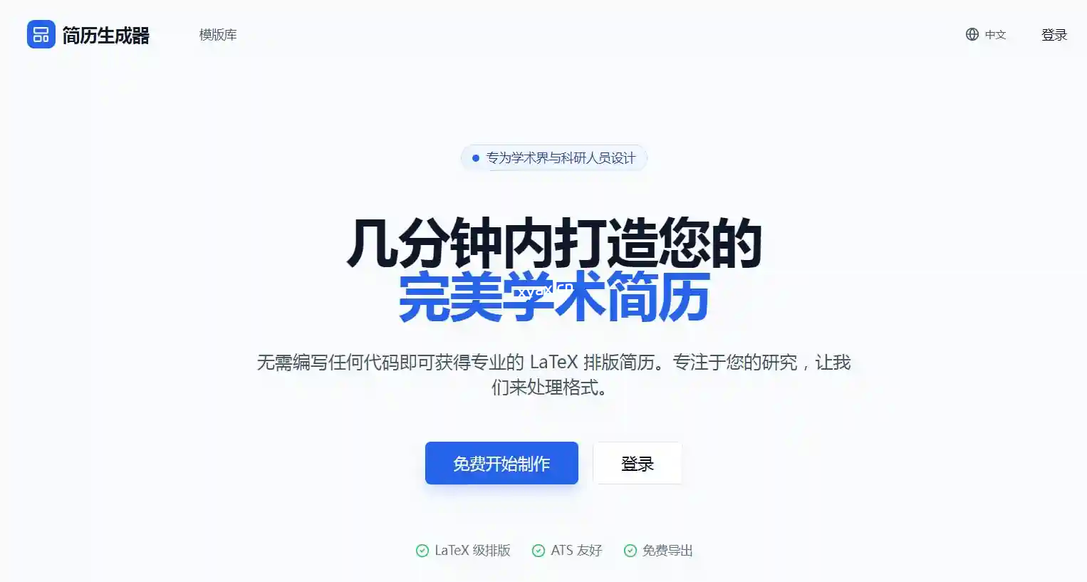 无需编写任何代码即可获得专业的 LaTeX 排版简历。专注于您的研究,让我们来处理格式。