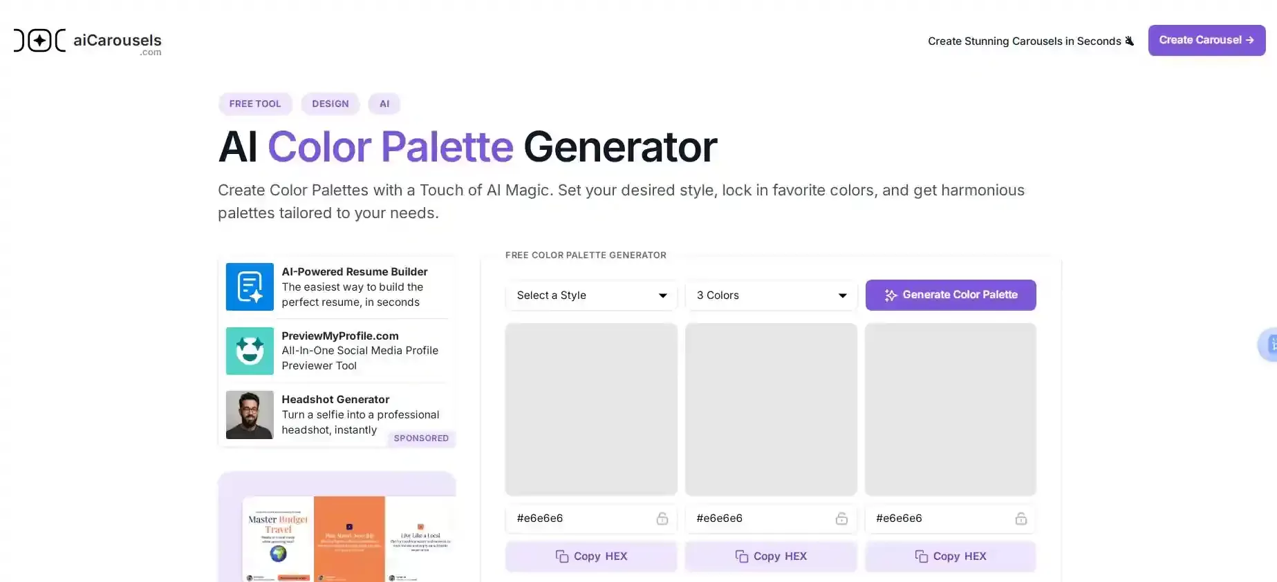 在线网址:https://www.aicarousels.com/free-tools/ai-color-palette-generator-free