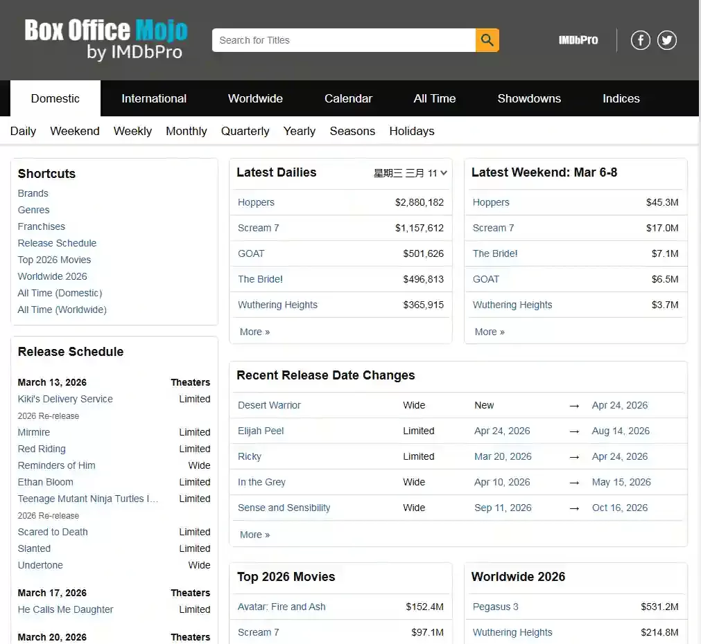 在线网址:https://www.boxofficemojo.com/