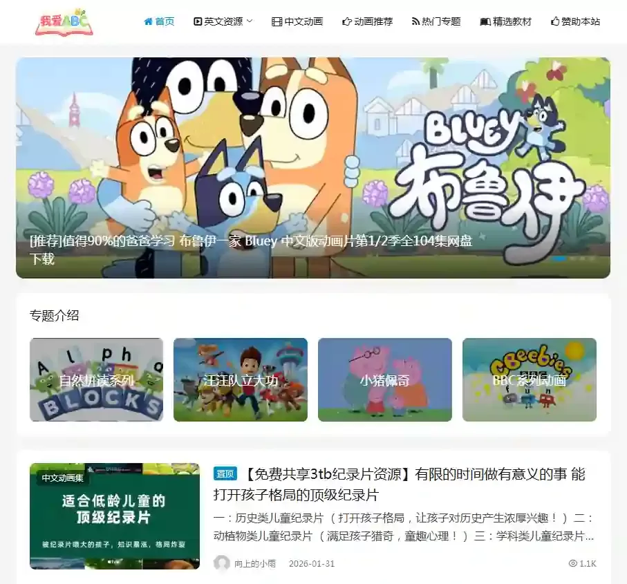 我爱abc早教资源站是专注幼儿启蒙的优质资源分享平台,汇集海量动画、启蒙教材、儿歌、绘本等精选内容。资源覆盖语言启蒙、认知发展、艺术感知等多个早教场景,分类清晰、实用性强,旨在为家长、早教机构及幼儿教育工作者提供便捷、优质的早教资源获取渠道,助力孩子在趣味中开启启蒙之旅,轻松实现全面发展。