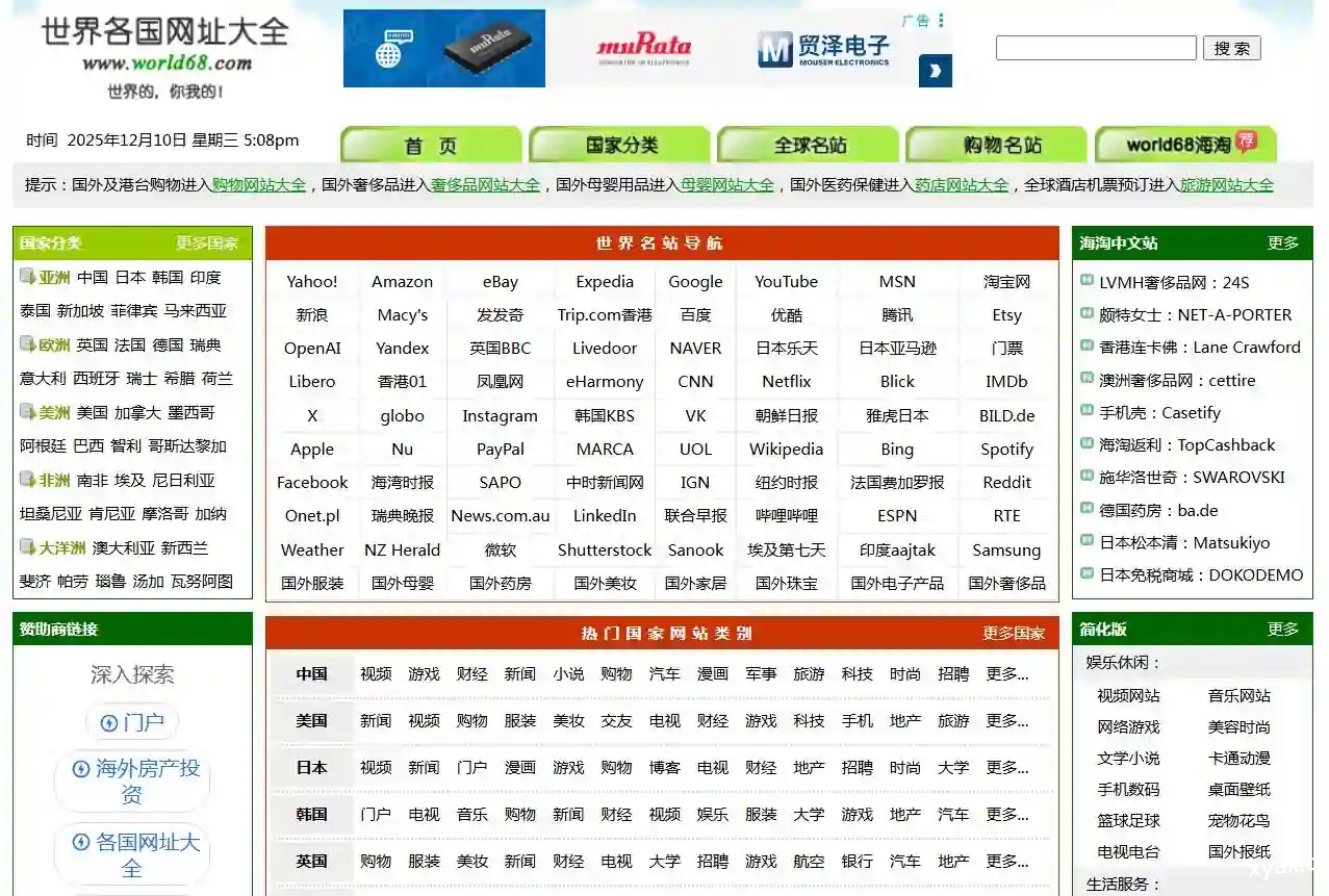 国外网站大全即世界各国网址大全,国外网站大全收录100多个国家知名网站,包括美国、中国(含香港台湾)、英国、法国、德国、日本、韩国、泰国、印度、俄罗斯、澳大利亚等。