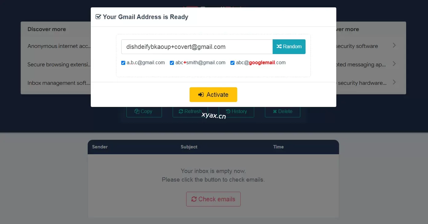 Gmail检索功能:与其他临时电子邮件网站不同,我们提供电子邮件检索功能。尽管这些临时Gmail地址是一次性的,但您可能会发现,在使用1个月、6个月甚至一年后,您需要再次使用这个Gmail。通过使用我们的“历史记录”功能,您可以快速检索到之前使用过的Gmail地址,并再次接收邮件。