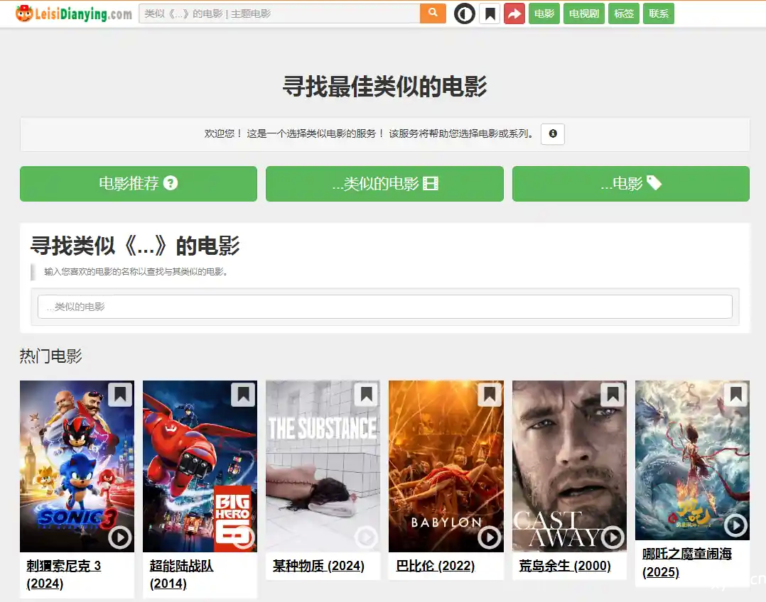 输入喜欢的电影或电视剧的名称,就能得到与其相似的推荐。