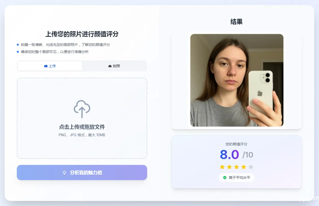 获取您的颜值评分和见解